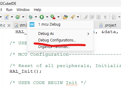ST-link가 정상적으로 붙었는지 이것저것 보던중 debug-configurations에서